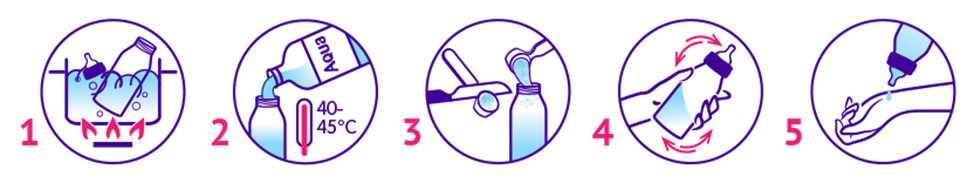 Шағын шөлмекте қалып қойған дайын қоспаның қалдығын келесі рет тамақ беру үшін пайдаланбаңыз. Қоспа сиыр сүтінің ақуыздарына аллергия жағдайында пайдалануға арналмаған.